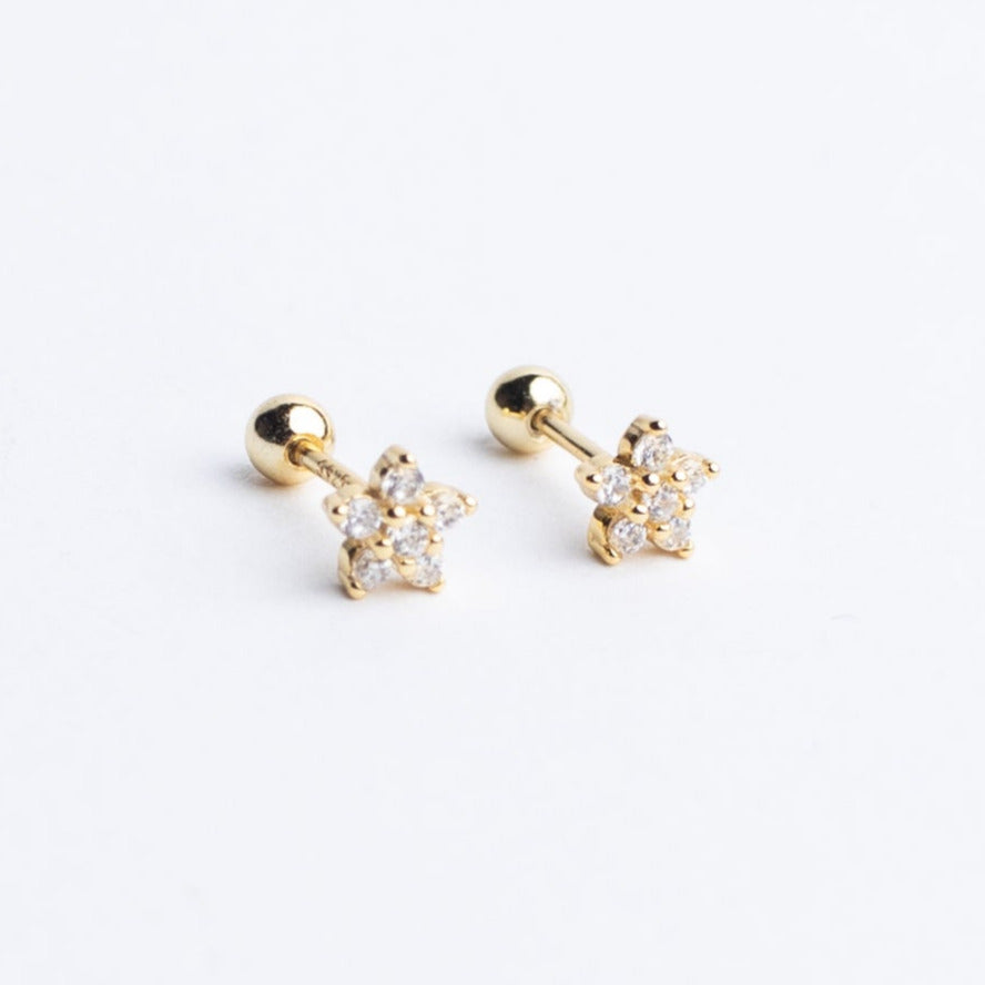 ~ Gold-plated sterling silver flower studs, with one cz stone in the middle!