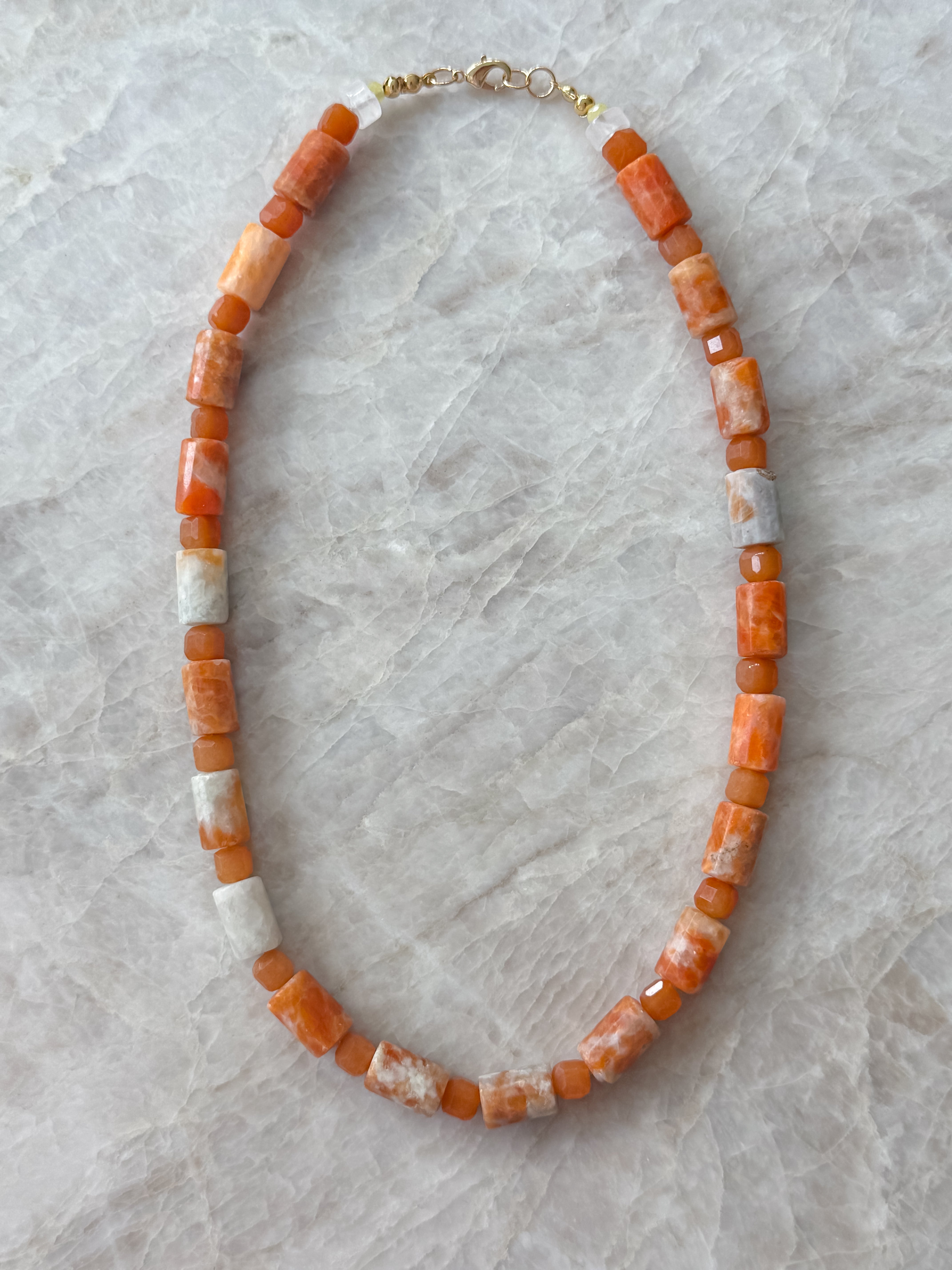 Beaded necklace that showcases AAA Sunstone stones with a delicate 14K cz gold-plated clasp.