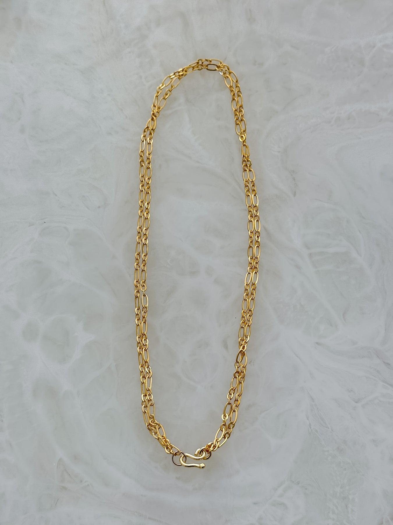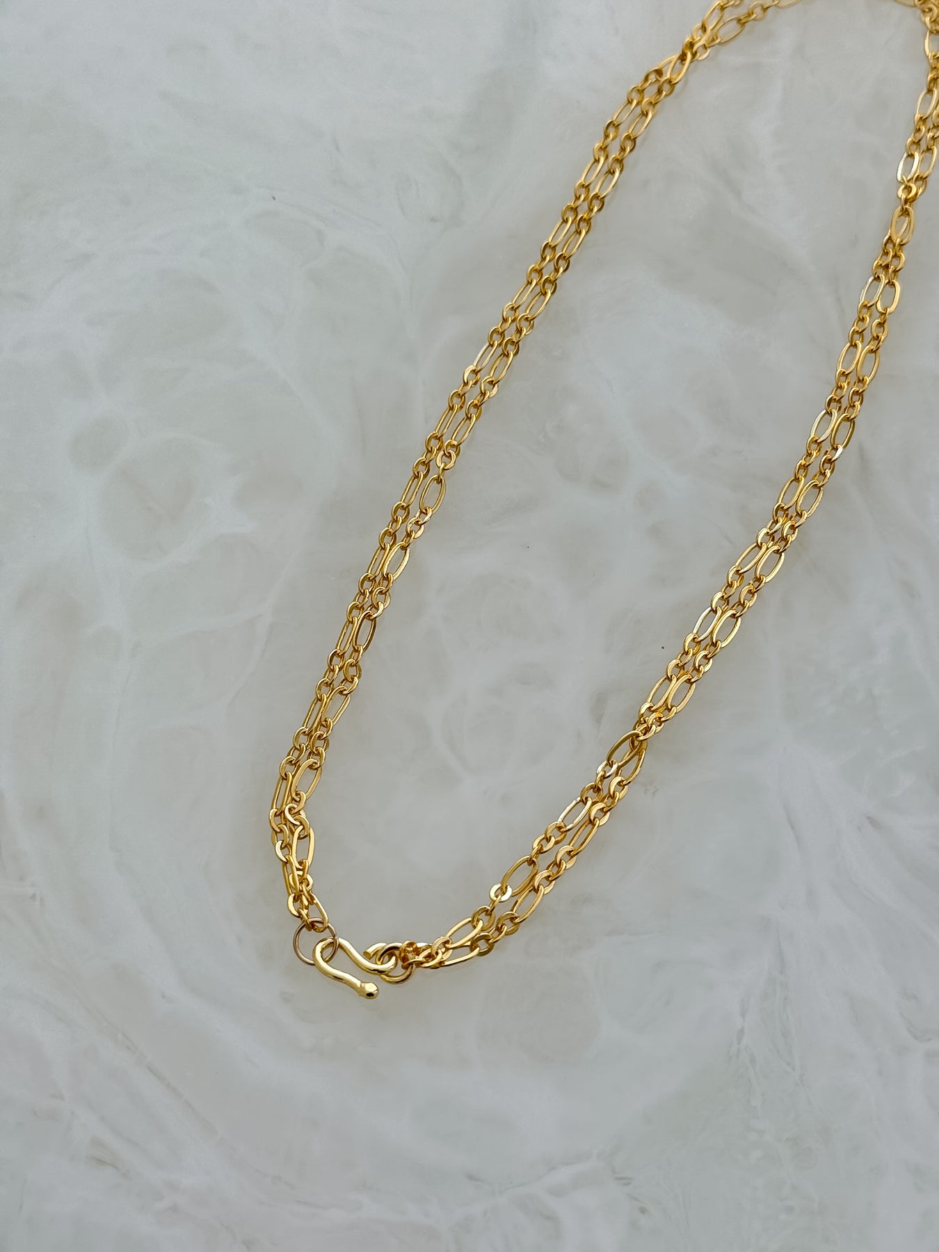 18K gold dipped necklace. Looks great alone, layered, or add a pendant. Adjustable length- wear it long or double it up with the attached hook for a shorter look.