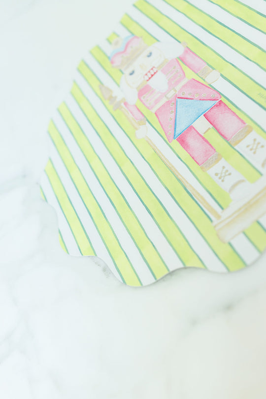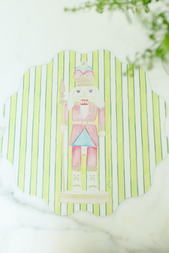 Catherine Cartie's watercolor painted nutcracker with green & white stripes on one side and her elegant holly painting on the other.